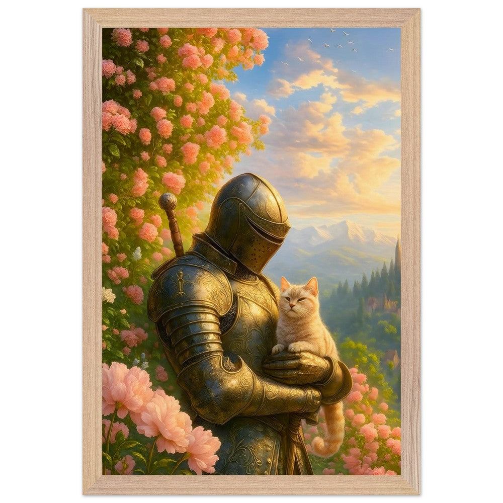 Knight of Serenity – Framed, Golden Armor and Cat Amidst Blooming Roses Knight of Serenity – Framed, Golden Armor and Cat Amidst Blooming Roses
